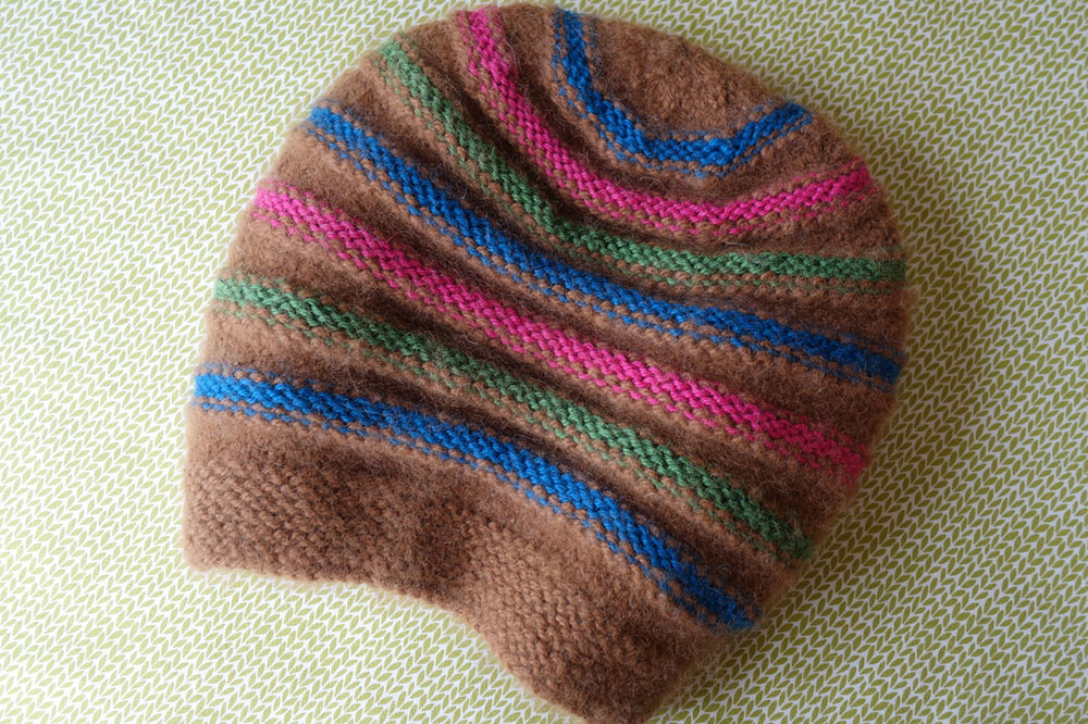 Bei dieser Mütze haben wir die Wolle unserer Milli verstrickt. Milli hat nicht nur eine sehr feine Faser, sondern ist auch ein „Menschenalpaka“ und lässt sich geduldig streicheln.
