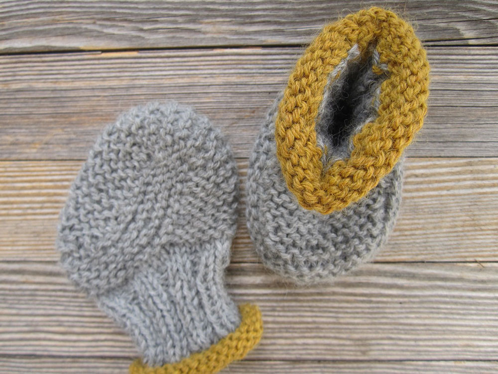 insgesamt 50 g Baby Alpaca in grau (50 g = 100m), Reste in blau und gelb